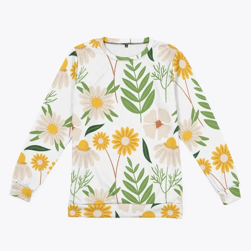 Celebrate the vibrant hues of morning flowers with our all-over print unisex crewneck sweatshirt.
